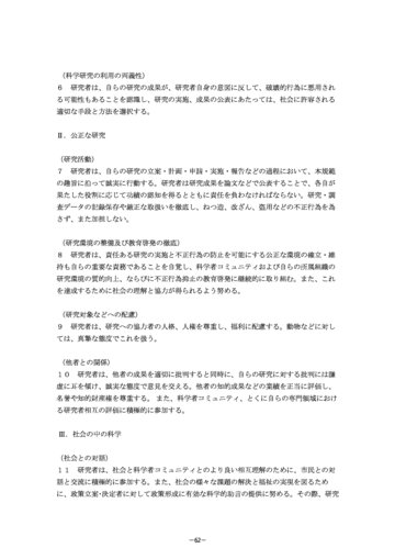 【日本学術会議】 科学の健全な発展のために 科学研究における健全性の向上について 科学者の行動規範