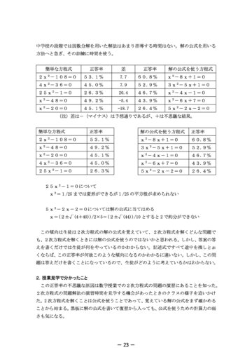 学習数学研究所 特任研究員 塩澤 友樹(*) 「3a-a=3」 。 「2 つの底角が等しい三角形は、二等辺三角形である」 。これらは、中学校 の授業で出会う代表的な 2 つの誤答である。前者は中学 1 年生の文字式の計算でよくある 誤りである。生徒は「ひくは取るだから、3a から a を取ればよい」と解釈し、解答したと 推察される。一方、後者は議論の余地が残るが、中学校の教科書では、二等辺三角形の底辺 の両端の角を「底角」と定義する。そのため、二等辺三角形と分からない段階では、 「2 つ の角が等しい三角形は、二等辺三角形である」と表現する。生徒は何となく回答したと答え るかもしれないが、この命題を通して、証明の学習における言葉の大切さ、論理的に考える ことの大切さを実感する。 中学生の授業を受け持った際、 毎年これらに戸惑う生徒がいる一 方、授業で取り上げた際に盛り上がる内容でもあった。私は初任者の頃、これらの反応を予 想することはできなかった。しかし、毎年、授業を受け持つ中で同じ内容でつまずく生徒に 出会い、逆にクラス全体で共有することで、生徒のつまずきを減らすことができた。このよ うに考えると、数学検定・算数検定にも同様の効果が期待できる。 現在の社会は、IT 機器の普及や AI(人工知能) 、ビッグデータ等の社会実装により、新た な市場が開拓され、 「第 4 次産業革命」を迎えている( [1] ) 。数学の重要性が増す中で、算 数・数学に関する素養を身に付けることはより一層重要になっている。 一方、 社会が多様化・ 複雑化するからこそ、1 人 1 人が自己の学びを客観的に評価すること、さらには典型的な誤 答に気付き、より深く自己の学びを把握し、改善できる学習環境を整える必要がある。例え ば、受検者個人として、数学検定・算数検定の合否だけでなく、細かい単元の正答率を把握 することで、自分の苦手分野に気付くことができる。また、大規模データに基づき典型的な 間違いを分類できれば、 その結果に照らし合わせて、 さらに詳細に自己の学びを振り返るこ とができる。 (公財)日本数学検定協会では、現在「数検スコア診断」の取組を通して、生徒 1 人ひと りの学習到達度を診断する WEB 上の分析診断ツールを提供している。 数学検定・算数検定に は、 個別最適化された学びの学習環境を整える観点からも、 ぜひ客観的なデータに基づき、 自己の学びをより深く把握し、改善に向けた道標を指し示すことができる取組にも期待し たい。願わくば、新しい時代の学校教育において、先生方の普段の授業の営みを支える役割 も担って欲しい。