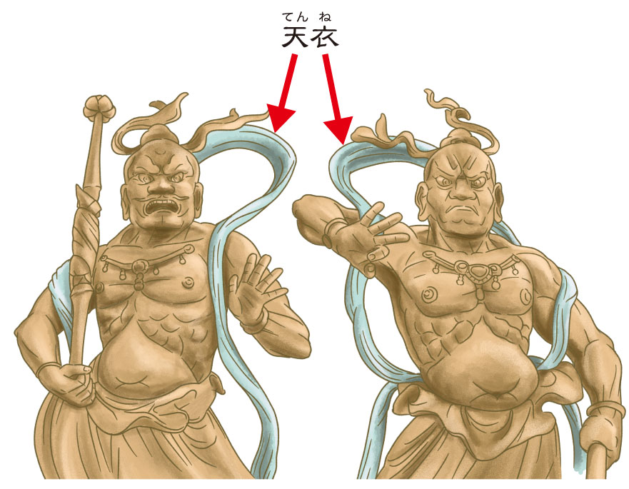 東大寺南大門の金剛力士像、阿形像と吽形像がまとう「天衣」の長さは、二体合わせて何mになると考えられますか。