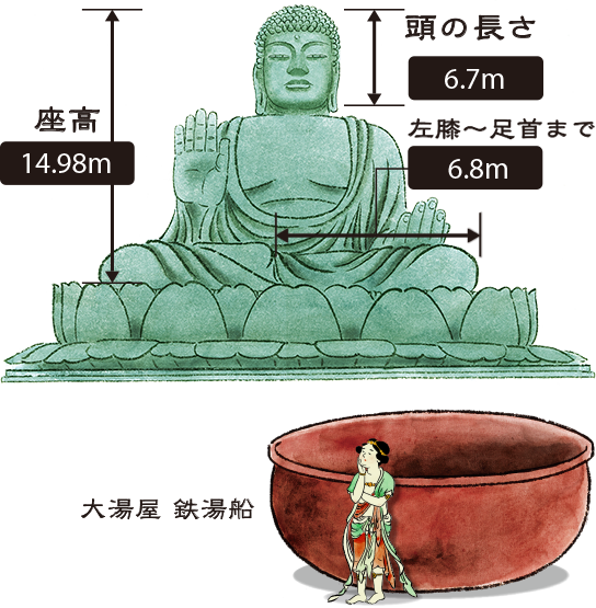 さて、もし大仏様が肩まで浸かってお風呂に入るとしたら、何L(リットル)のお湯が入る湯船が必要でしょうか?